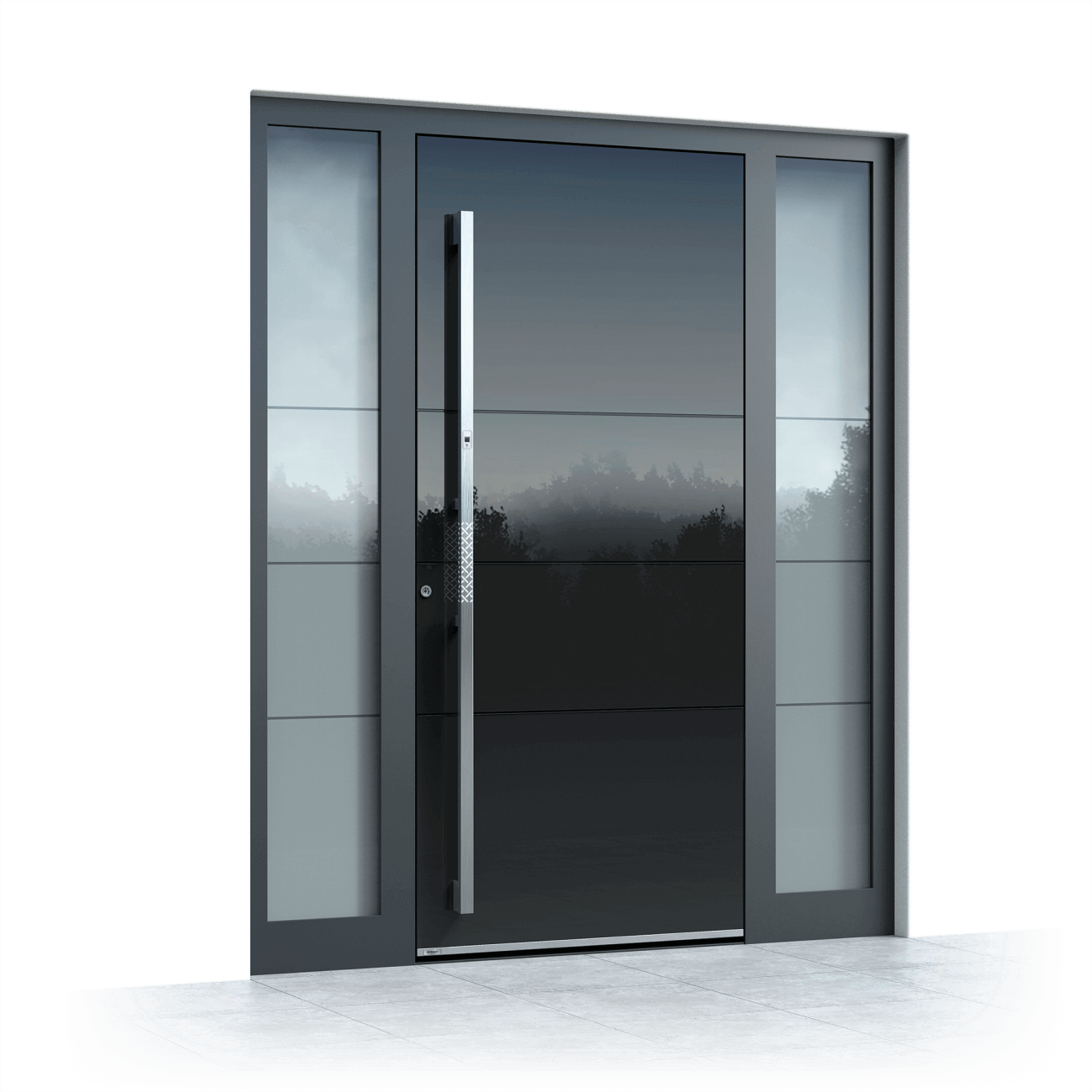 What makes Pirnar's front doors unique are the details, designs and technical innovations. The beautiful 6009 is the result of a wonderful combination of the glossy black ESG Night Sky glass, the elongated bar handle, the MagmaLux lighting and the dark, finely textured colour of the frame. The gentle glow from the MagmaLux lighting, which is installed in the rectangular handle, casts an enchanting pattern on the surrounding surfaces and brightens up your arrival home. We recommend installing a SECUROSMART fingerprint scanner, which also fits in the handle, as well as an ARMO COMFORT ELECTRO three-point or multi-point lock for optimum security. The model is also available in a combined alu-wood version.