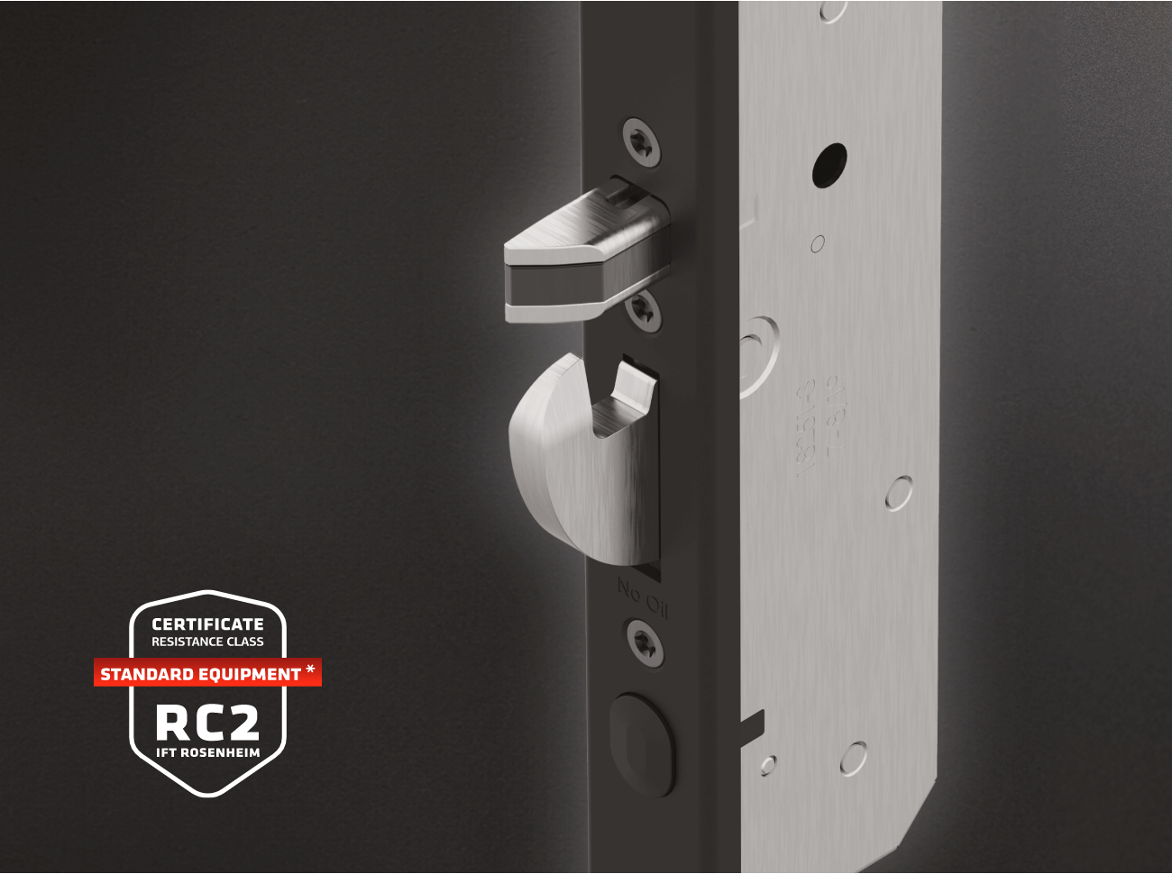 *The RC2 package is standardly available for a solid door leaf, without insulating glass in the door leaf. For designs with insulating glass in the door leaf, the RC2 package is available as an additional option.